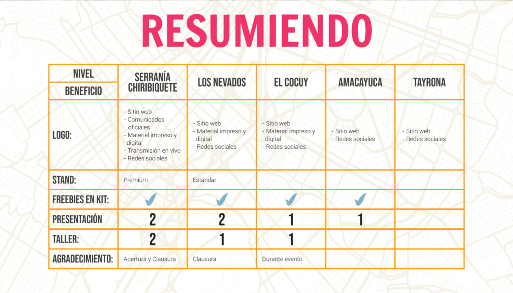 Para información detallada, por favor lee el documento de llamado a patrocinadores (En Google Drive.)